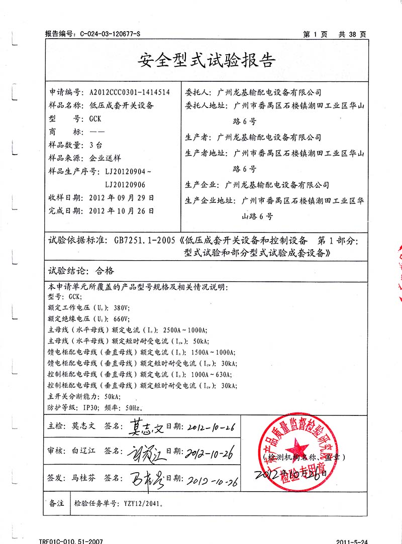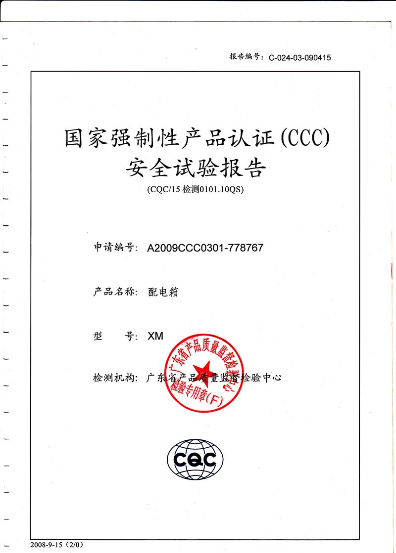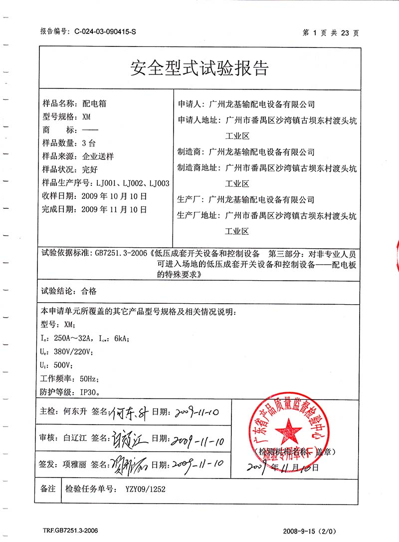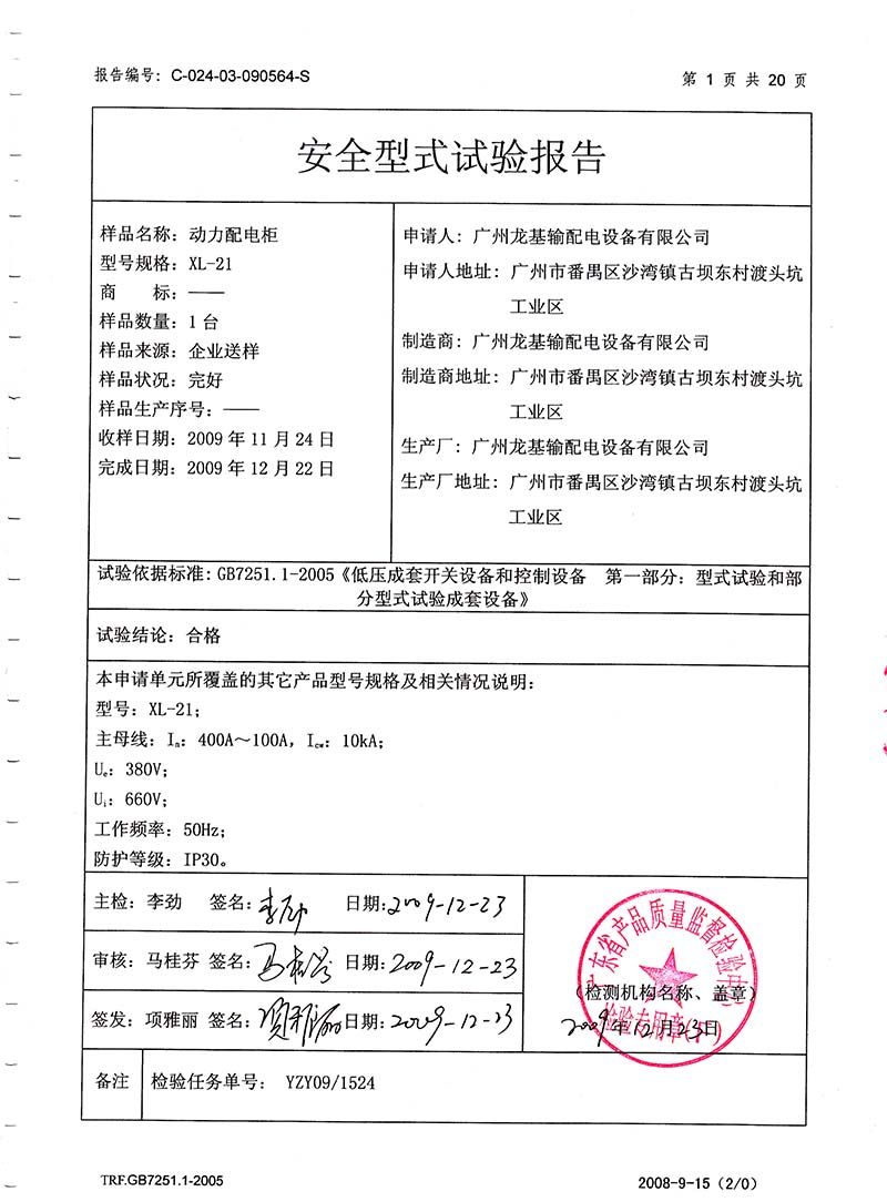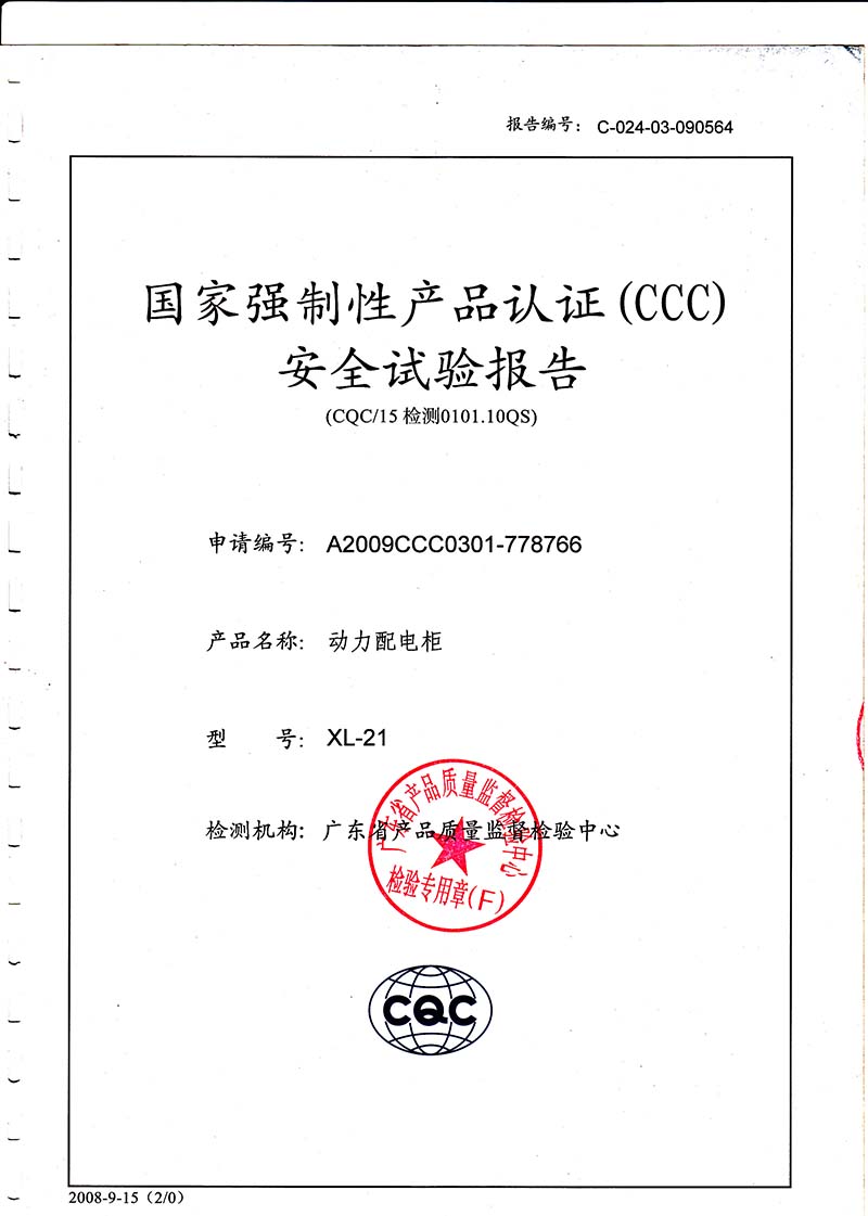 動力配電柜檢驗報告第1頁
