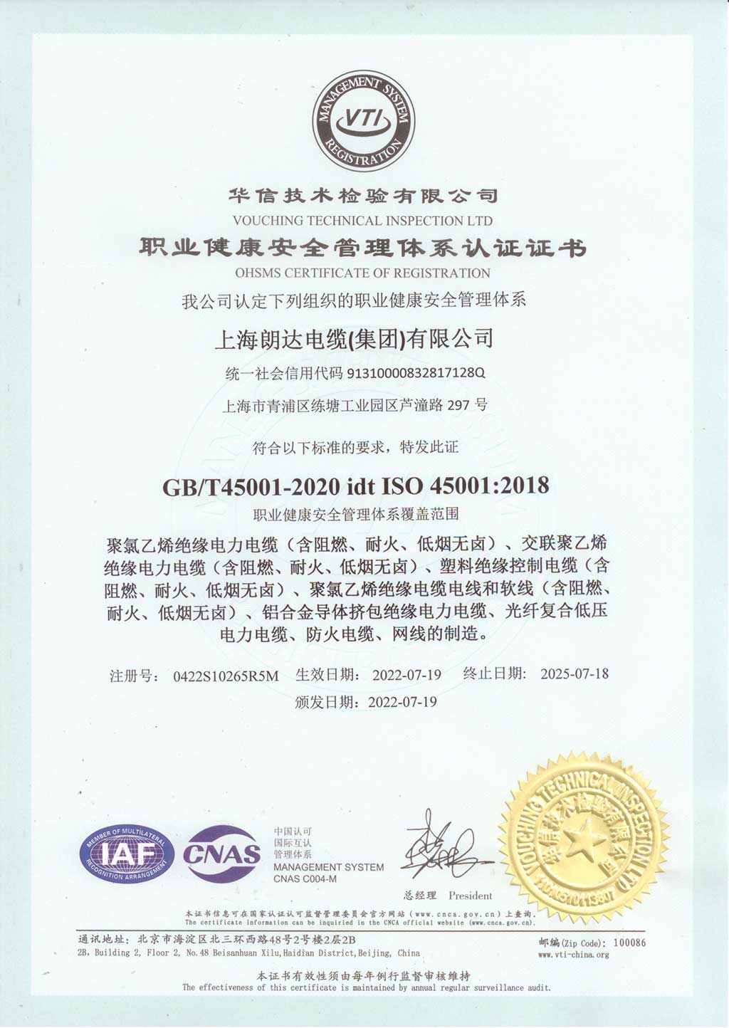 ISO45001-職業(yè)健康安全管理體系認證證書