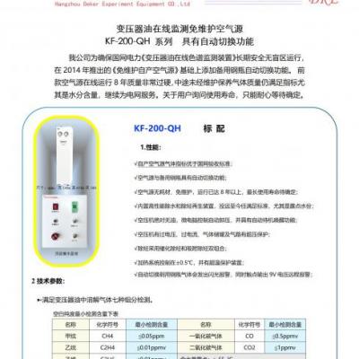 杭州德克爾實(shí)驗(yàn)設(shè)備有限公司是專(zhuān)業(yè)從事高端氣體研究、開(kāi)發(fā)和制造設(shè)備的企業(yè)。針對(duì)目前變壓器油在線色譜儀檢測(cè)載氣以空氣鋼瓶為主,氣量有限需經(jīng)常更換,造成維護(hù)成本居高不下,我公司特研發(fā)生產(chǎn)除甲烷、二氧化碳的無(wú)油空氣發(fā)生器,實(shí)現(xiàn)了在線變壓器色譜儀檢測(cè)免維護(hù),并提高了色譜儀測(cè)定變壓器油中甲烷氣體、二氧化碳的最小檢測(cè)量。 概述 長(zhǎng)期以來(lái)變壓器油色譜在線監(jiān)測(cè)載氣單元采用瓶裝氣體,由于瓶裝氣體容量有限檢測(cè)時(shí)間久了或者檢測(cè)頻率過(guò)高,會(huì)導(dǎo)致載氣瓶更頻繁換,所以設(shè)定每天檢測(cè)一次或兩天檢測(cè)一次,這樣的間隔檢測(cè)不能實(shí)時(shí)發(fā)現(xiàn)變壓器急性故障,只能檢測(cè)那些緩慢的潛伏性故障,從某種角度說(shuō)不能為稱(chēng)在線檢測(cè)。選用<變壓器油色譜在線監(jiān)測(cè)專(zhuān)用空氣發(fā)生器>就能24小時(shí)連續(xù)產(chǎn)出高純度載氣,可以1小時(shí)一次連續(xù)檢測(cè),真正實(shí)現(xiàn)變壓器油色譜實(shí)時(shí)分析,監(jiān)視電力變壓器的運(yùn)行情況及時(shí)發(fā)現(xiàn)變壓器內(nèi)部初始潛伏性故障。本產(chǎn)品變壓點(diǎn)擊查看