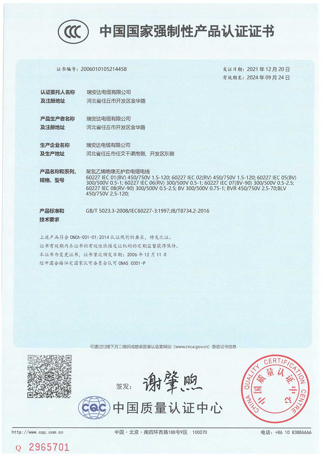 瑞安達(dá)電纜有限公司創(chuàng)建于2005年初,屬于國(guó)家高新技術(shù)企業(yè)、國(guó)家大型電纜制造、研發(fā)企業(yè),煤礦用電纜、裝備用電纜,在同行業(yè)中名列前茅。公司位于河北省任丘市經(jīng)濟(jì)技術(shù)開發(fā)區(qū),占地面積25萬平方米,建筑面積15萬平方米,現(xiàn)有固定資產(chǎn)10億元。公司現(xiàn)有員工268余人,其中高級(jí)工程師5名,工程師10名,設(shè)計(jì)研發(fā)人員42名,專業(yè)技術(shù)人員40余名?,F(xiàn)擁有3個(gè)生產(chǎn)廠區(qū),各類生產(chǎn)設(shè)備500多(臺(tái))套,檢測(cè)試驗(yàn)設(shè)備100多(臺(tái))套。 生產(chǎn)銷售:電線電纜、電纜附件;加工銷售:銅、鋁、鋁合金制品、橡膠制品、塑料制品;銷售:光纖光纜及其組件、電纜原材料、鋼材、木材、工業(yè)線束、通訊產(chǎn)品連接件、電子插接件、機(jī)械設(shè)備、建筑裝飾材料、金屬材料、化工產(chǎn)品(化學(xué)危險(xiǎn)品除外)、充電樁、新能源汽車(國(guó)家機(jī)動(dòng)車主管部門許可的機(jī)動(dòng)車)、辦公用品、通訊設(shè)備、電子產(chǎn)品;計(jì)算機(jī)軟硬件及附屬設(shè)備的研發(fā)、銷售;技術(shù)咨詢服務(wù);企業(yè)管理咨詢服務(wù);貨物進(jìn)出口點(diǎn)擊查看