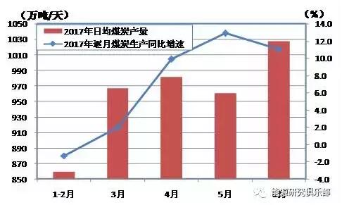 圖1 煤炭日均產(chǎn)量及增速(2017年1月至6月)