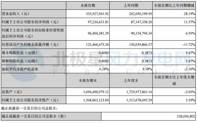 金雷風電2017年上半年主要會計數(shù)據(jù)和財務指標