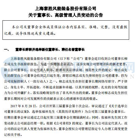 柳志成先生自公司成立以來,一直擔任公司董事長(或執(zhí)行董事),是公司最重要的領(lǐng)軍人物、靈魂人物,十幾年來,他帶領(lǐng)公司從小到大、由弱變強,發(fā)展成為國內(nèi)領(lǐng)先、國際知名的風電裝備制造企業(yè)。“精工制造、仁德經(jīng)營”是柳志成先生提出的企業(yè)精神,“做最可信賴的企業(yè),塑造最可信賴的產(chǎn)品”是泰勝人在柳志成先生帶領(lǐng)下一致秉承的經(jīng)營理念,今后公司仍將繼續(xù)秉承這一精神及理念,在領(lǐng)域內(nèi)繼續(xù)進行深耕發(fā)展、做大做強。柳志成先生已辭去公司董事長職務(wù),辭職后柳志成先生仍在公司董事會任職,其作為公司實際控制人、董事,將在公司未來戰(zhàn)略發(fā)展、業(yè)務(wù)轉(zhuǎn)型、管理變革等方面繼續(xù)為公司建言獻策并給予指導和幫助。根據(jù)公司新任董事長張福林先生提名,董事會聘任柳志成先生為公司名譽董事長。