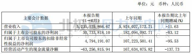 橙電網風力發(fā)電網獲悉,時代新材2017上半年實現營業(yè)收入52.35億元(5,235,125,866.67元),同比下降11.63%;實現歸屬于上市公司股東的凈利潤3073.38萬元(30,733,818.10元),同比下降83.12%。