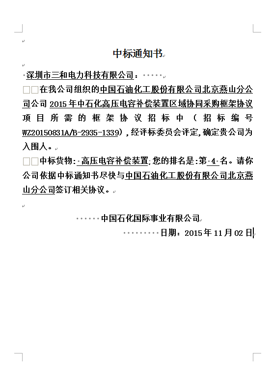 案例內(nèi)容:2015年我公司中標(biāo)中石化電容器項(xiàng)目