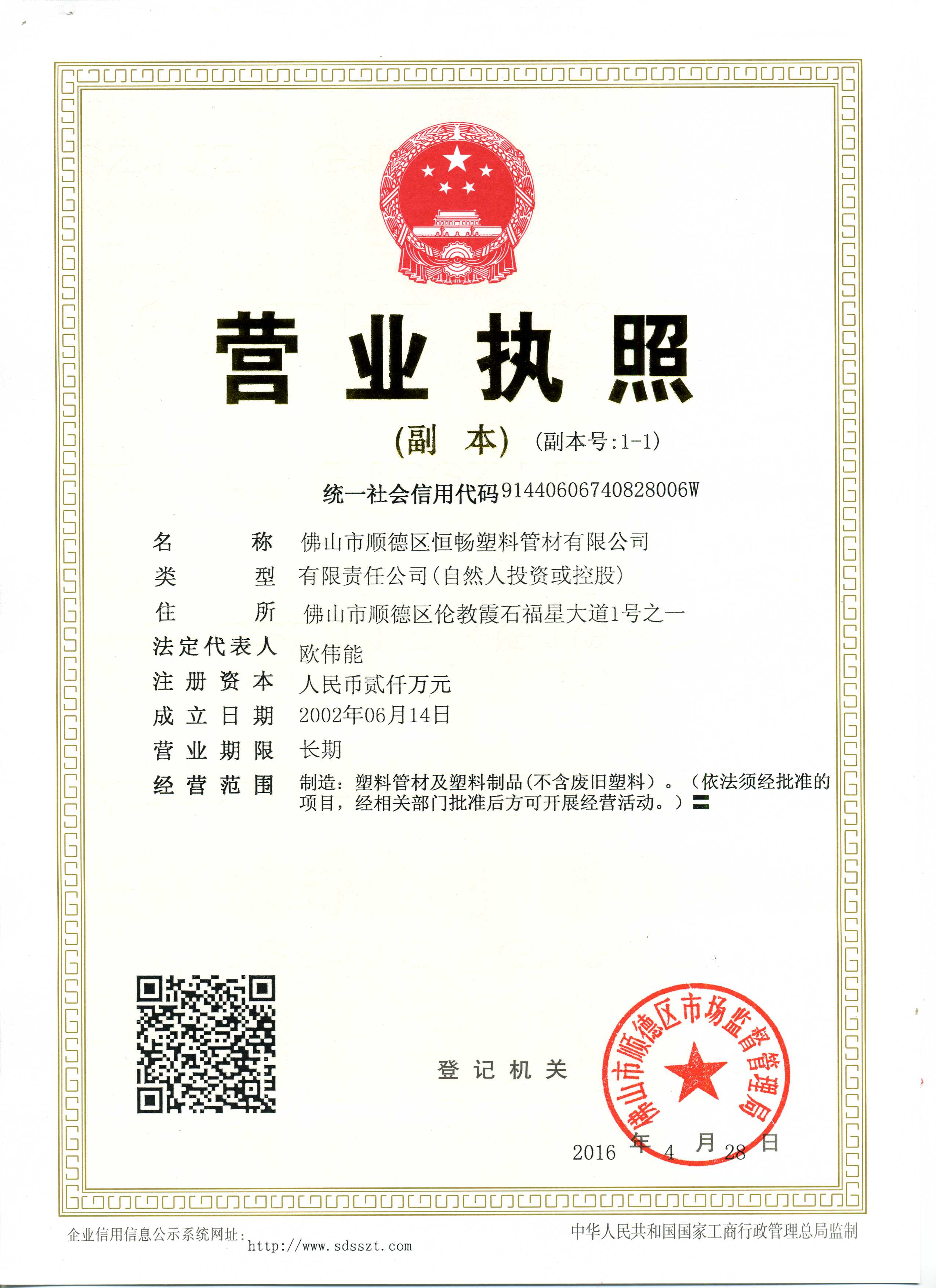 佛山市順德區(qū)恒暢塑料管材有限公司成立于2000年,座落于人杰地靈的珠三角中心地帶---順德,交通便利,地理位置優(yōu)越。公司擁有倫教霞石、北滘西海兩處生產(chǎn)基地,二十條國內(nèi)先進(jìn)的生產(chǎn)線,專業(yè)從事HDPE、PVC系列電力電纜保護(hù)套管,HDPE、MPP非開挖用頂管、碳素螺紋電纜保護(hù)管及其它管材的研發(fā)、生產(chǎn)和銷售,年生產(chǎn)能力達(dá)3萬噸以上。“恒暢”牌電力電纜保護(hù)管被廣泛用于城鄉(xiāng)電力電網(wǎng)建設(shè)及改造工程、電信及光纜線路鋪設(shè)、工業(yè)園區(qū)建設(shè)和房地產(chǎn)開發(fā)等,是理想的電纜、光纜保護(hù)管材。 我們的追求與社會對我們的認(rèn)可 佛山市順德區(qū)恒暢塑料管材有限公司于2002年通過ISO9001:2000質(zhì)量管理體系認(rèn)證。“恒暢”牌系列產(chǎn)品經(jīng)佛山市質(zhì)量計量監(jiān)督檢測中心和廣東省質(zhì)量監(jiān)督塑料管材管件檢測站檢測,各項性能指標(biāo)均達(dá)到或超過國家建材行業(yè)標(biāo)準(zhǔn)和電力行業(yè)標(biāo)準(zhǔn)的要求?!昂銜场迸葡盗挟a(chǎn)品現(xiàn)已成為電力行業(yè)內(nèi)大多數(shù)設(shè)計和施工單位的首選,并多次被政府和權(quán)威機(jī)點(diǎn)擊查看