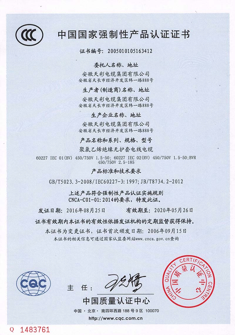 安徽天彩電纜集團(tuán)有限公司位于安徽省儀表、電線、電纜生產(chǎn)基地——天長市,是一家集研發(fā)、生產(chǎn)和銷售為一體的儀表、電線、電纜和橋架生產(chǎn)企業(yè)。公司成立于1992年,注冊資金26888萬元,總資產(chǎn)超過5億元,建筑面積四萬平方。公司通過ISO9001:2008質(zhì)量體系認(rèn)證、ISO14001:2004環(huán)境體系認(rèn)證、OHSAS 18001: 2007職業(yè)健康安全體系認(rèn)證,全國工業(yè)產(chǎn)品許可證認(rèn)證、CCC認(rèn)證、CE認(rèn)證、煤安認(rèn)證等多個(gè)國家級權(quán)威機(jī)構(gòu)認(rèn)證。公司被認(rèn)定為“省高新技術(shù)企業(yè)”、先后獲得“滁州市守合同重信用單位”、“滁州市知名商標(biāo)”, “AAA級信用企業(yè)” 、“安徽省A級納稅信用單位”等榮譽(yù)稱號,擁有13個(gè)實(shí)用新型專利。 公司生產(chǎn)的電纜產(chǎn)品包括電力電纜、控制電纜、計(jì)算機(jī)電纜、儀表電纜、橡套電纜、特種電纜、汽車新能源充電樁電纜等七大類上萬型號、規(guī)格產(chǎn)品,生產(chǎn)設(shè)備先進(jìn),檢測設(shè)備齊全,特別是橡套電纜產(chǎn)品,擁有六條現(xiàn)代化連硫生產(chǎn)線,產(chǎn)品電壓等級覆蓋高、中、低壓,礦用點(diǎn)擊查看