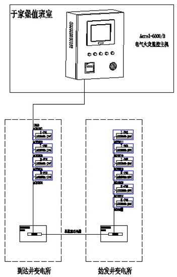 現(xiàn)場始發(fā)井配電室出線柜上安裝的40塊電氣火災(zāi)探測器通過雙絞線(ZR-RVSP2*1.0)以手拉手方式進行通訊連接然后經(jīng)過光貓將電信號轉(zhuǎn)為光信號經(jīng)光纖傳輸?shù)降竭_井配電室,再經(jīng)光貓將光信號轉(zhuǎn)換為電信號,然后這根總線再接入到達井配電室出線柜上的23塊電氣火災(zāi)探測器,最終這根總線接入到于家堡消防控制室的電氣火災(zāi)監(jiān)控主機上。