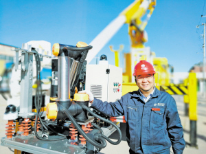 張黎明對(duì)機(jī)器人進(jìn)行現(xiàn)場調(diào)試。潘晶 攝