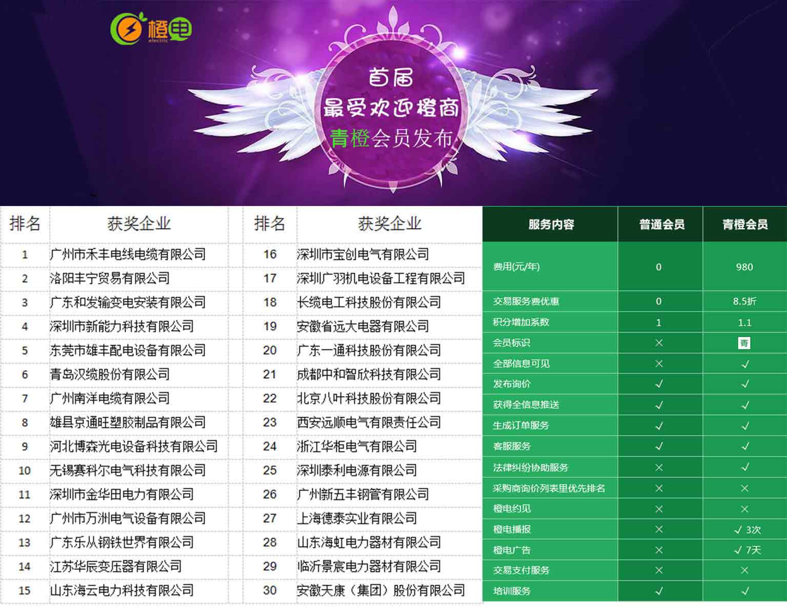 首屆最受歡迎橙商獲獎(jiǎng)?wù)邇r(jià)值980元青橙會(huì)員服務(wù)發(fā)布,享受交易服務(wù)費(fèi)優(yōu)惠、網(wǎng)站詢(xún)價(jià)信息全部可見(jiàn)、橙電網(wǎng)站內(nèi)免費(fèi)宣傳等一系列增值服務(wù)。