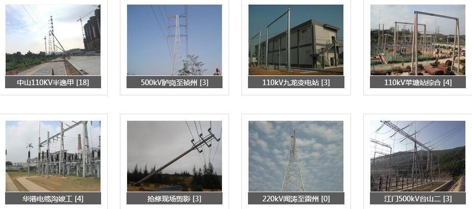 公司自成立以來,先后承接大小工程1000多項,其中500千伏送電線路勞務承包工程10回,架設(shè)線路長度約187.06公里;220千伏送電線路工程52回,架設(shè)線路長度約1049.7公里;110千伏及以下送電線路架設(shè)線路長度約5806.7公里;220千伏及以下變電工程主變總?cè)萘考s86萬千伏安。